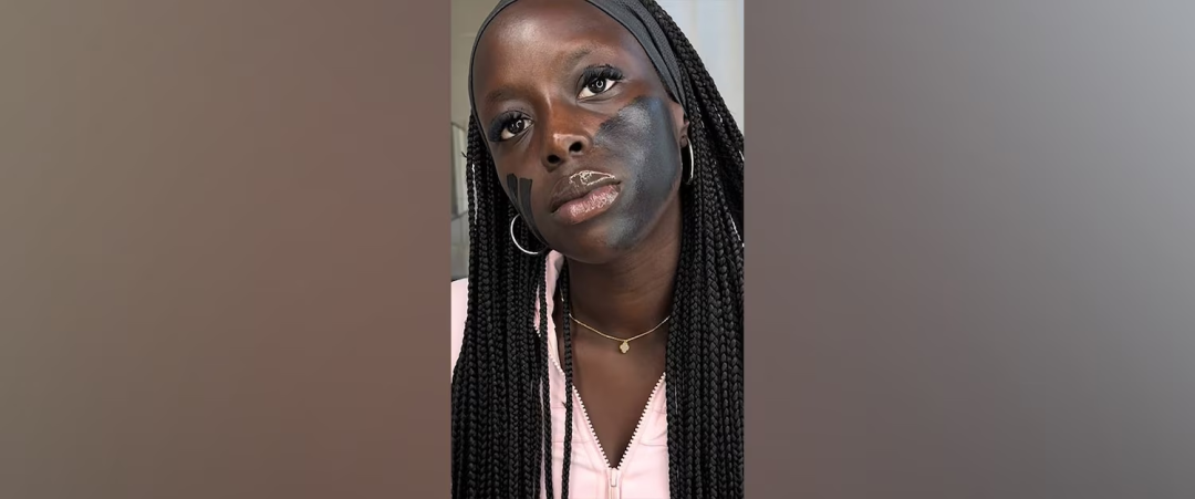 左臉:戲劇用純黑色油彩,右臉:Youthforia600號(hào)粉底;圖源:Golloria George/TikTok