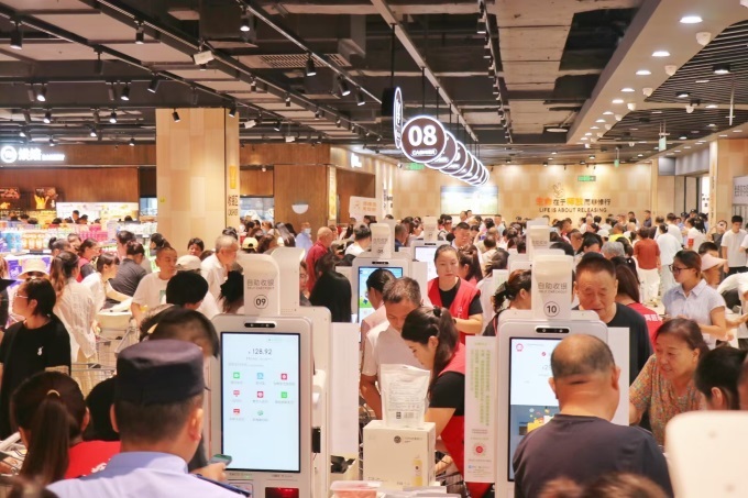 再如世紀聯(lián)華調(diào)改首店(中環(huán)店),營業(yè)面積從12000平方米壓縮至3960平方米,SKU從2萬多個銳減至2800個,重新選品疊加到8500個,生鮮銷售占比從30%提升至48%,水產(chǎn)、豬肉、熟食加工等重點品類全部自營。煥新后的世紀聯(lián)華中環(huán)店線下零售總額同比提升35%,客流同比提升20%,客單提升14%,坪效提升107%,人效提升17%,人均收入增長超過20%,品效提升40%。