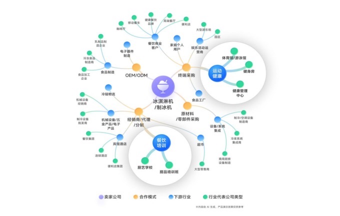 以一家主營冰淇淋機、制冰機的商家為例,除了熟悉的超市、連鎖餐飲、酒店等主流采購方,OKKI AiReach還挖掘出諸如甜品培訓(xùn)班、廚藝學(xué)校、體育館等易被忽略的客戶類型。這些客戶往往不在原本的“銷售地圖”里,卻恰恰是增量的關(guān)鍵來源。