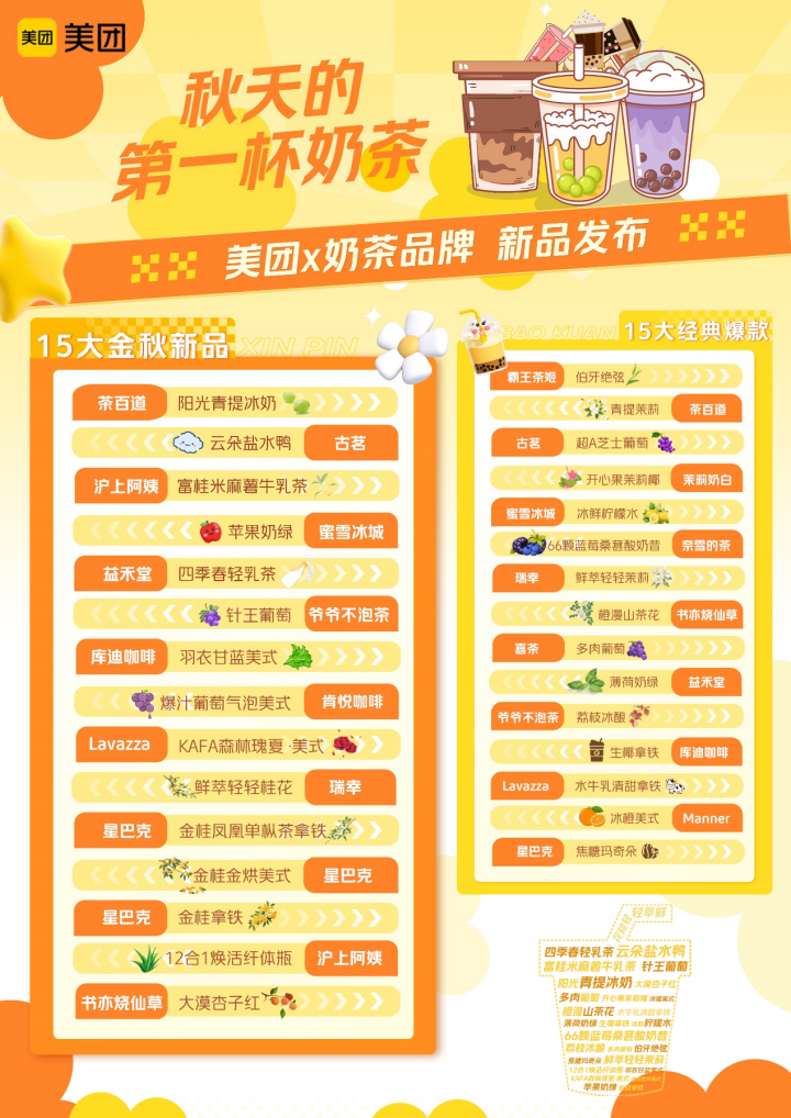 今年“秋天第一杯奶茶”,超100家品牌將聯(lián)手美團(tuán)首發(fā)新品