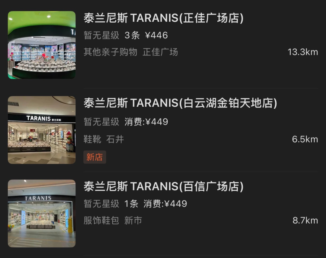 泰蘭尼斯廣州部分線下門店 | 截圖來(lái)源于大眾點(diǎn)評(píng)
