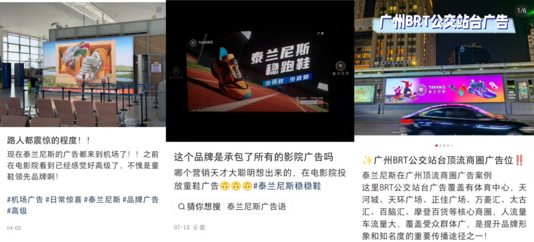 “不到一分鐘的電梯能重復(fù)三四遍它的廣告”“電梯每日N播”“現(xiàn)在在機(jī)場(chǎng)都能看到泰蘭尼斯的廣告”“在機(jī)場(chǎng)看到它的廣告就算了,電影院也看到”“這個(gè)品牌是承包了所有影院的廣告嗎”……