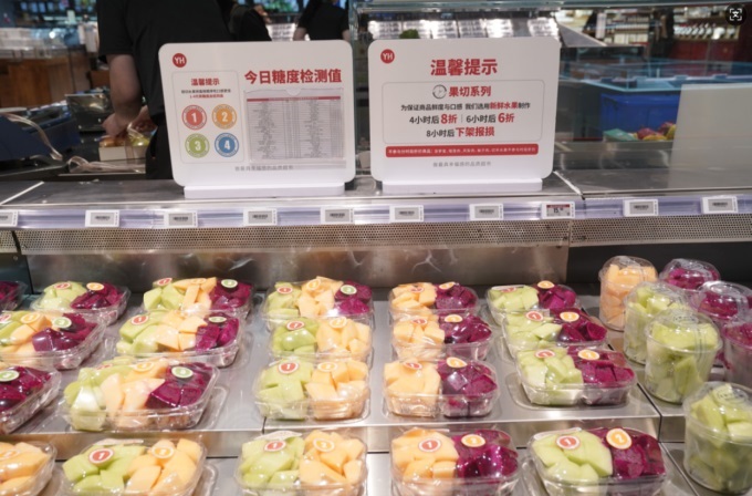 服務升級更顯溫度:新增顧客休息區(qū)配備血壓儀、直飲水及微波爐,寵物安置區(qū)解決攜寵購物痛點;肉禽區(qū)支持切絲、絞肉等定制加工,海鮮區(qū)提供高端食材精處理服務。在食品安全領域,門店嚴格執(zhí)行“果切468原則”(4小時8折、6小時6折、8小時下架),部分生鮮商品實行日清制,筑牢“舌尖上的防線”。