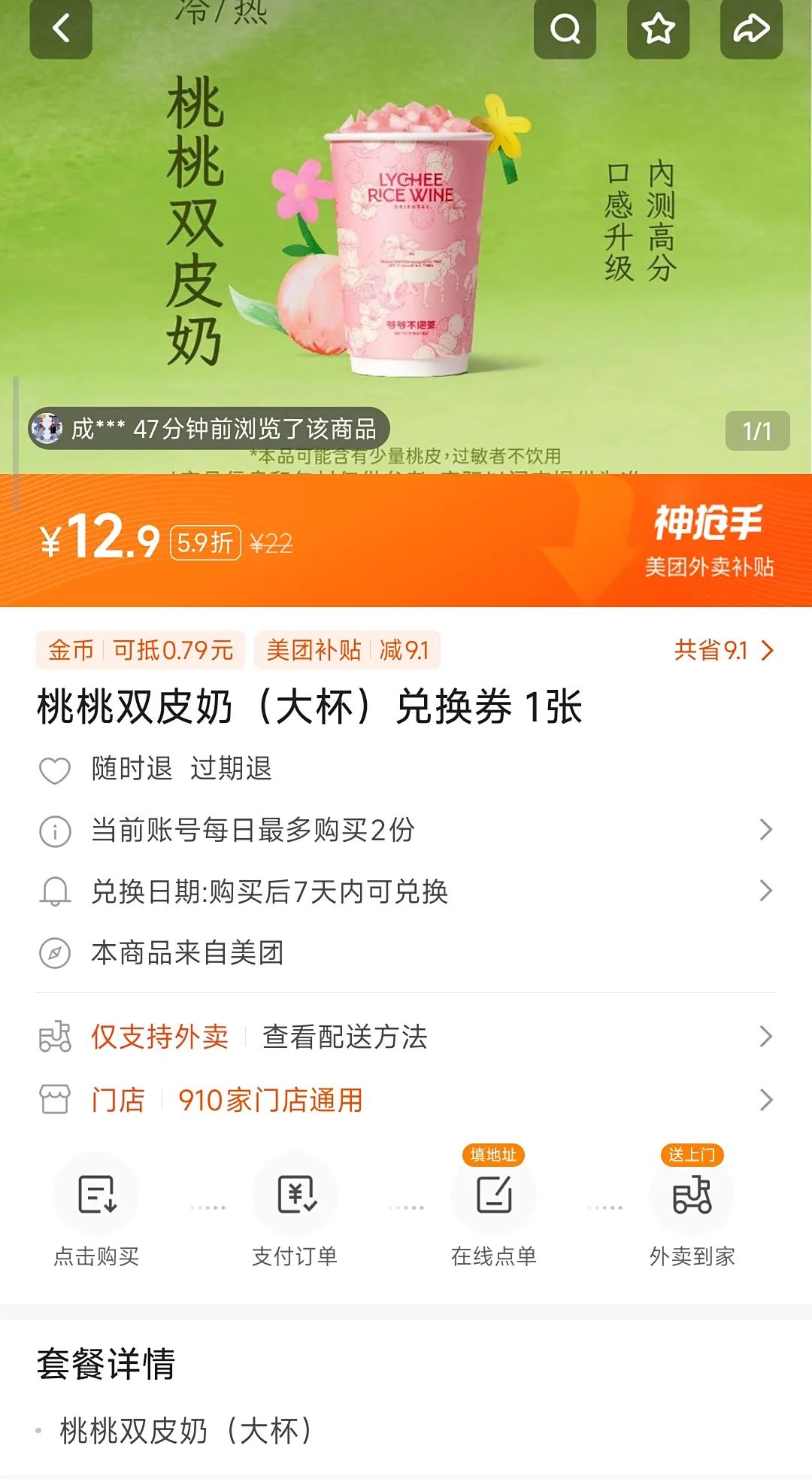 當(dāng)你深入體驗(yàn)會(huì)發(fā)現(xiàn),快手這“外賣”玩法有點(diǎn)繞。頁(yè)面里商品看著像外賣,實(shí)則都是團(tuán)購(gòu)兌換券。比如爺爺不泡茶的桃桃雙皮奶兌換券,買了之后,不是直接在快手點(diǎn)外賣配送,得按照流程,通過(guò)線上小程序選“外賣配送”,確認(rèn)收貨地址和時(shí)間,后續(xù)查看配送信息、完成配送等環(huán)節(jié),還得跳轉(zhuǎn)美團(tuán)小程序操作。