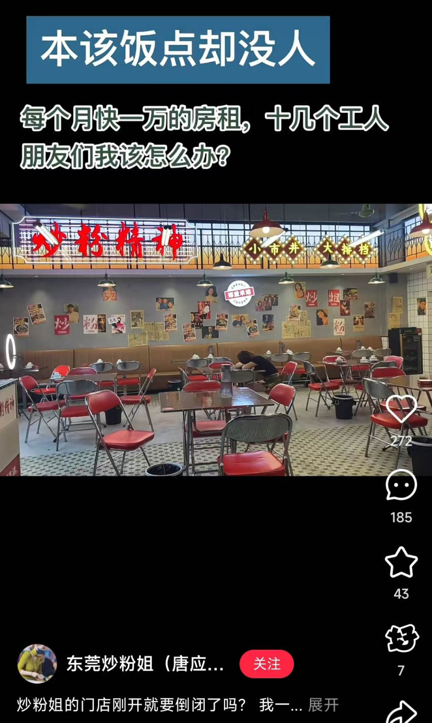 ·也是在3月,靠擺攤時(shí)戴口罩展現(xiàn)出來(lái)的精致外表走紅的炒粉姐,將攤位升級(jí)成門(mén)店“唐應(yīng)炒粉姐”后,也悄然閉店;