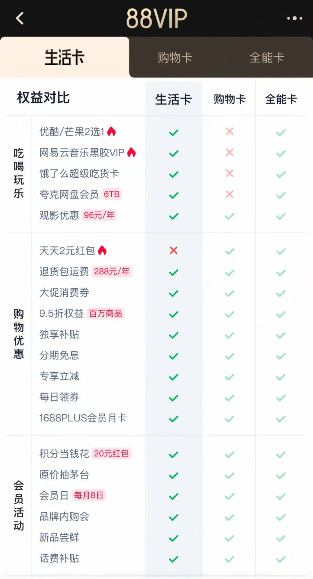 如果說,淘寶需要一個會員體系來增加淘寶APP本身的用戶粘性,它的88VIP實則已經(jīng)可以做到了。