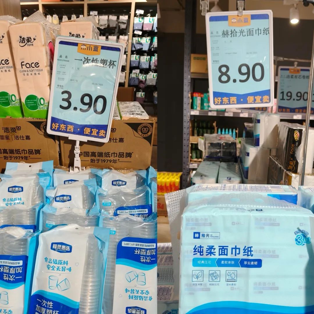 在定價(jià)策略與供應(yīng)鏈建設(shè)上,京小盒自營(yíng)商品以極致性價(jià)比為核心,供應(yīng)商均為行業(yè)頭部企業(yè):“赫拾光”面巾紙由中順潔柔紙業(yè)(A股上市企業(yè),合作終端超200萬(wàn)家)生產(chǎn),100抽*8包規(guī)格售價(jià)僅8.9元;40個(gè)裝一次性塑料杯售價(jià)3.9元,供應(yīng)商陜西東勛新材科技實(shí)業(yè)為可口可樂(lè)、百事可樂(lè)等企業(yè)的長(zhǎng)期合作伙伴;330ml勁爽蘇打水由上海延中飲料(旗下延中鹽汽水曾半月內(nèi)天貓銷售500萬(wàn)瓶)生產(chǎn),單價(jià)1.7元。