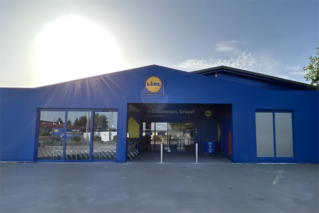 與此同時(shí),Lidl同步改造了Lottstetten街區(qū)對(duì)面的傳統(tǒng)門店,轉(zhuǎn)型為“生鮮專賣店”,完全撤出非食品類,從而實(shí)現(xiàn)“生鮮與非食雙店分流”。門店外醒目張貼導(dǎo)購(gòu)海報(bào),引導(dǎo)顧客前往對(duì)面的非食品概念店選購(gòu)家居用品。