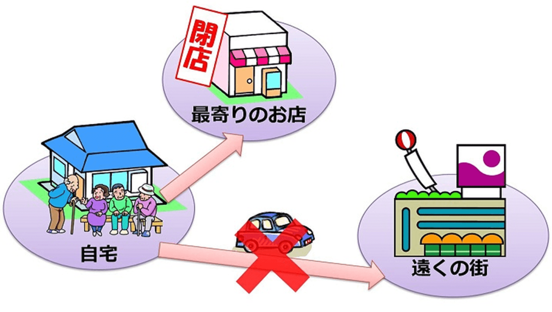 同時(shí),日本還是一個(gè)少子高齡化的特殊市場。老年人使用汽車的頻率下降;女性就業(yè)率上升因此雙職工家庭普及,工作日下班才能購物的家庭更傾向于選擇公共交通工具,使東京居民購物的移動(dòng)距離大幅縮短。再加上大型食品超市的壟斷化趨勢讓附近的商店消失,因此哪怕是正在壯年的消費(fèi)者,只要沒有汽車,很容易成為“購物難民”。