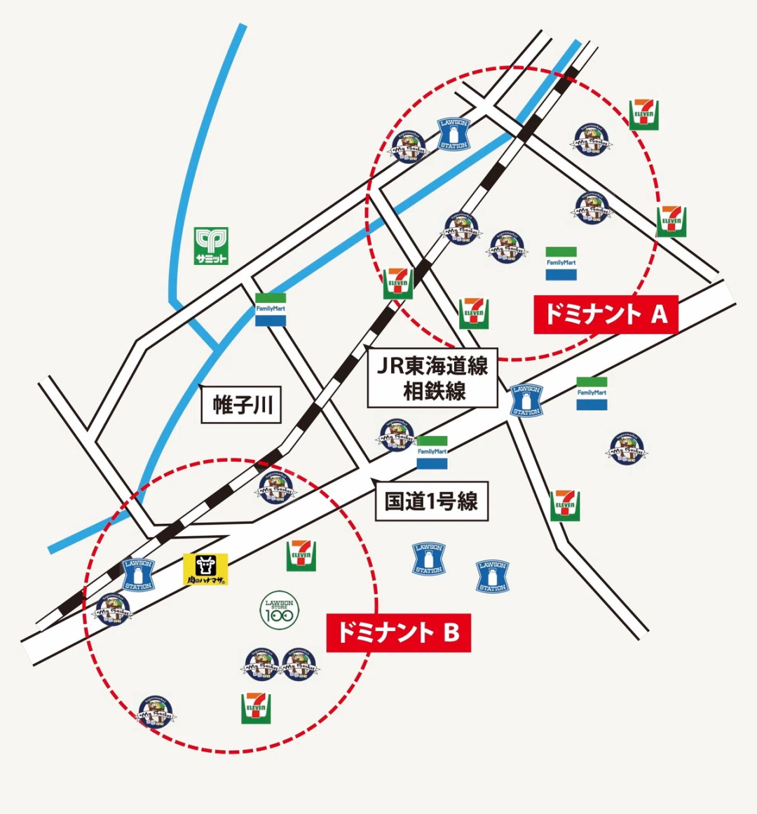 橫濱西區(qū)兩個(gè)半徑300米的區(qū)域門店