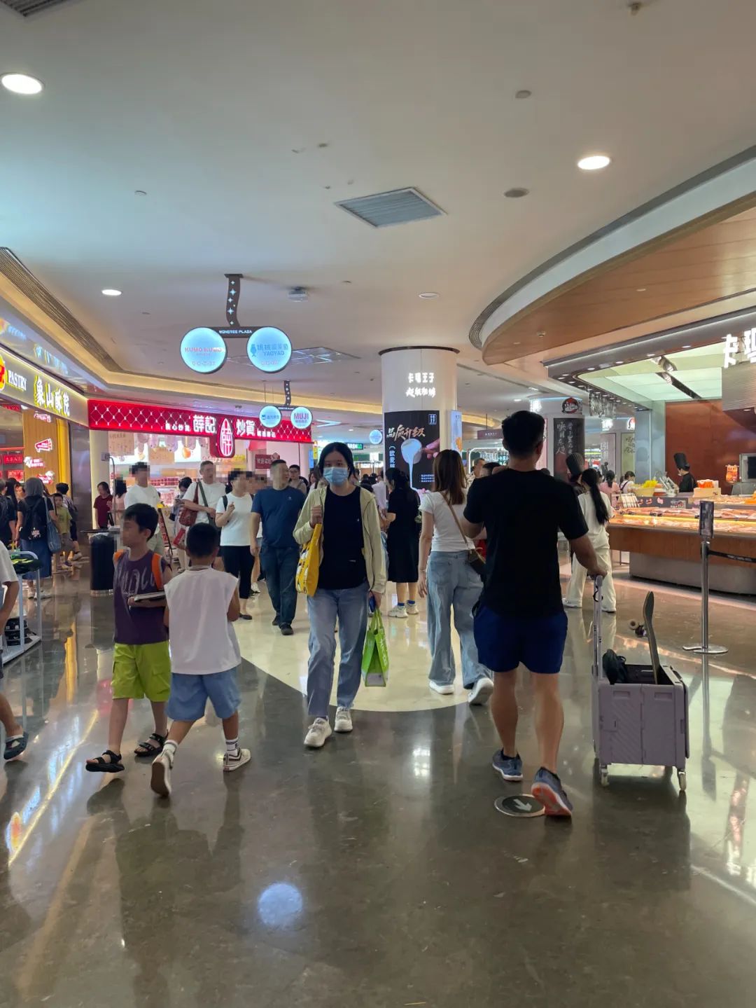 特別是港客北上后,皇庭廣場被港客占領。人多,不少品牌排隊進場,商場內(nèi)的中島店也越來越多,幾乎占滿有限的公共空間,導流通道越來越窄,看起來非常逼仄。