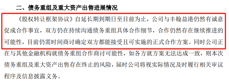 這就不太好評價了,畢竟皇庭國際與債權人幾年前就簽署了協(xié)議,試圖通過債務重組解決問題,只是幾年過去沒有進展。而且在8月1日,皇庭國際發(fā)布債務重組及重大資產(chǎn)出售進展情況公告,顯示還在溝通具體合作細節(jié)。