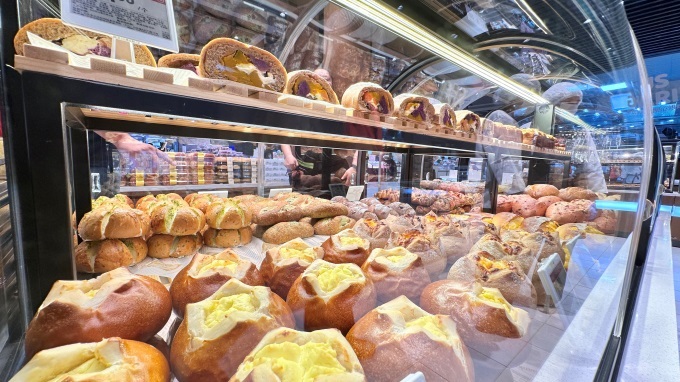 烘焙區(qū)山茶花山泉吐司、“豐收的喜悅”歐包現(xiàn)烤現(xiàn)售,黃油曲奇餅干、榴蓮大福等新品引發(fā)年輕客群排隊(duì)選購(gòu);