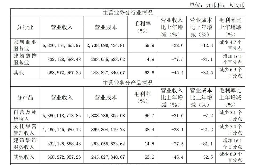 紅星美凱龍主營業(yè)務(wù)分行業(yè)、分產(chǎn)品情況 圖源:紅星美凱龍2024年年度報(bào)告