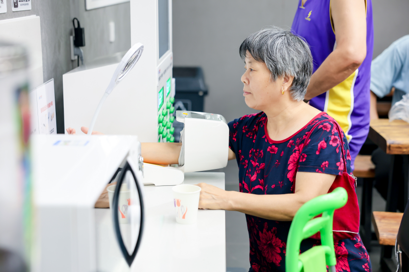 入口處的“一站式服務(wù)島”太圈粉!自助茶飲解渴、應(yīng)急藥箱救急、血壓儀隨時自查…細微處盡顯關(guān)懷。