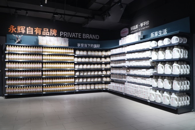 超市還專設(shè)胖東來自有品牌專區(qū),DL精釀啤酒、橙汁、葡萄汁等飲品,多效洗衣液、飲用天然礦泉水、自由愛·白酒、酸奶水果燕麥脆、壓榨一級(jí)花生油、多功能潔面柔巾等多款產(chǎn)品集中陳列,讓市民在家門口就能便捷選購(gòu)胖東來品質(zhì)好物。此外,永輝自有品牌商品同樣備受關(guān)注:黑松露火腿蘇打餅干、奧巧脆脆燕麥片等明星產(chǎn)品設(shè)有專屬堆頭;新推出的微膠囊香氛酵素洗衣液憑借7重酵素多效去污、90% 成分源自天然、18%活性物深層凈化的核心優(yōu)勢(shì),一經(jīng)上線便贏得消費(fèi)者青睞。