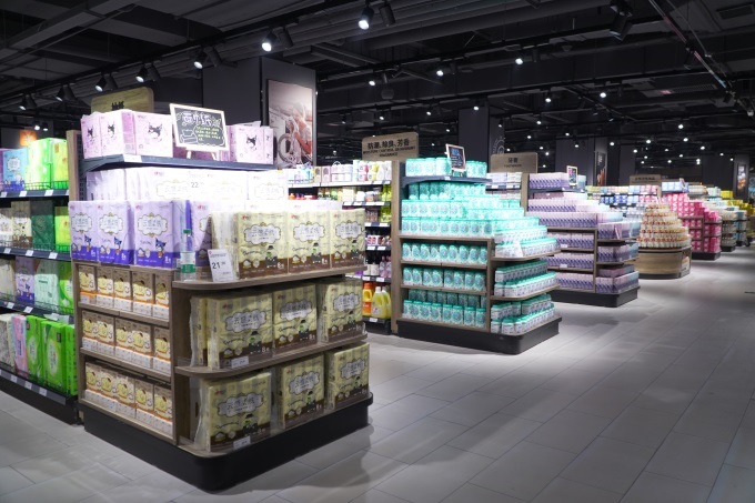 煥新后的公園南路店,整體裝修風(fēng)格更趨簡(jiǎn)約大氣。門店打破傳統(tǒng)強(qiáng)制動(dòng)線設(shè)計(jì),大幅拓寬過道空間;貨架布局同步優(yōu)化,中島貨架高度降至 1.6 米,層數(shù)精簡(jiǎn)為5-6層,視野更開闊,顯著提升了購(gòu)物環(huán)境的品質(zhì)感。