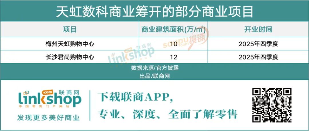 2025年將新開梅州天虹購物中心和長沙君尚購物中心兩大商業(yè)體。