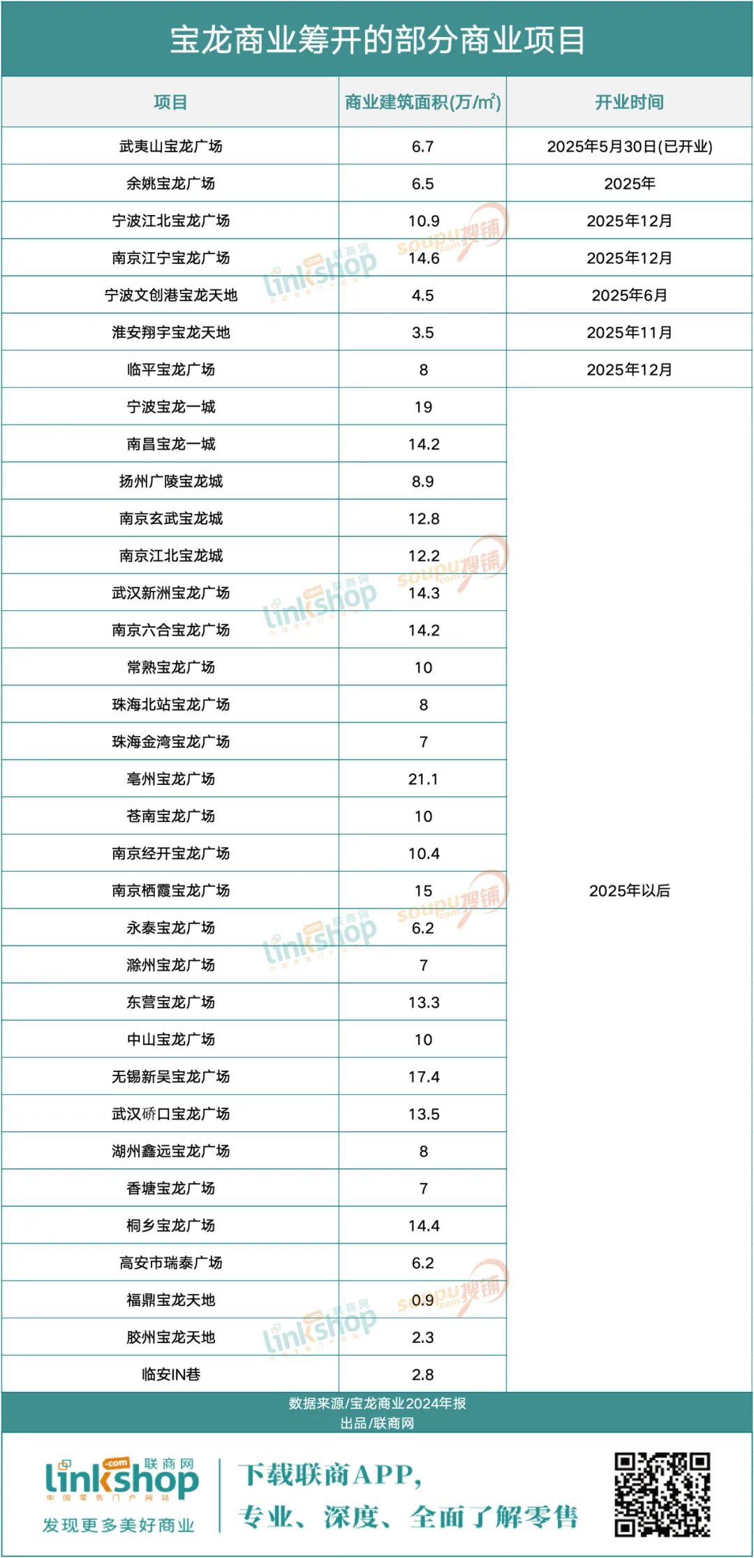 截至2024年年末,寶龍商業(yè)已開業(yè)零售商業(yè)物業(yè)98個,商業(yè)總簽約建筑面積約1451萬㎡,商業(yè)平均出租率為91.5%。目前也有不少項目在建待開業(yè)。