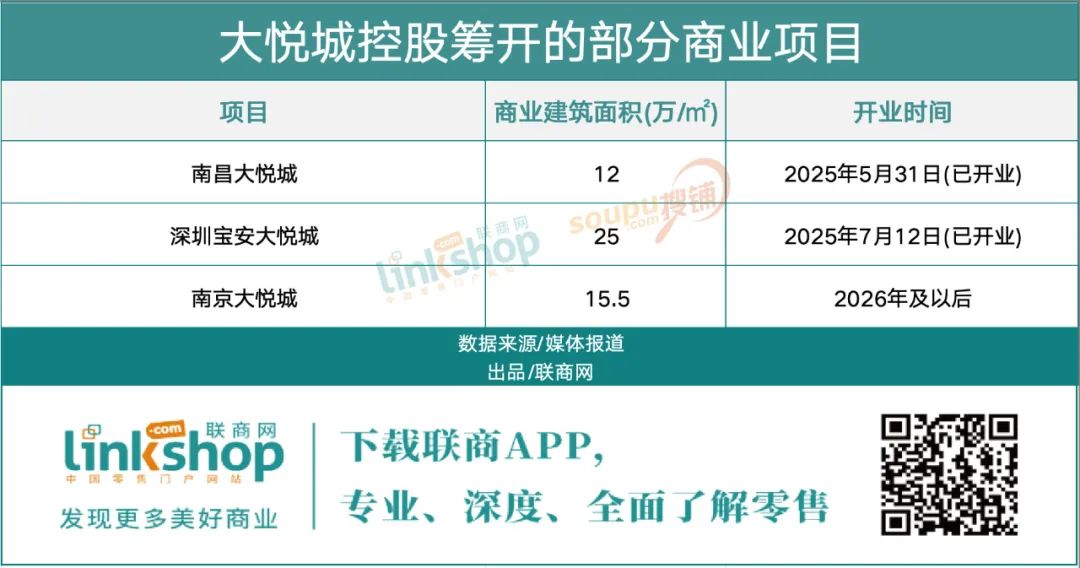 截至2024年年末,大悅城控股商業(yè)在全國布局了44個商業(yè)項目,總商業(yè)面積達(dá)375萬㎡。目前包括南京大悅城等項目待開。