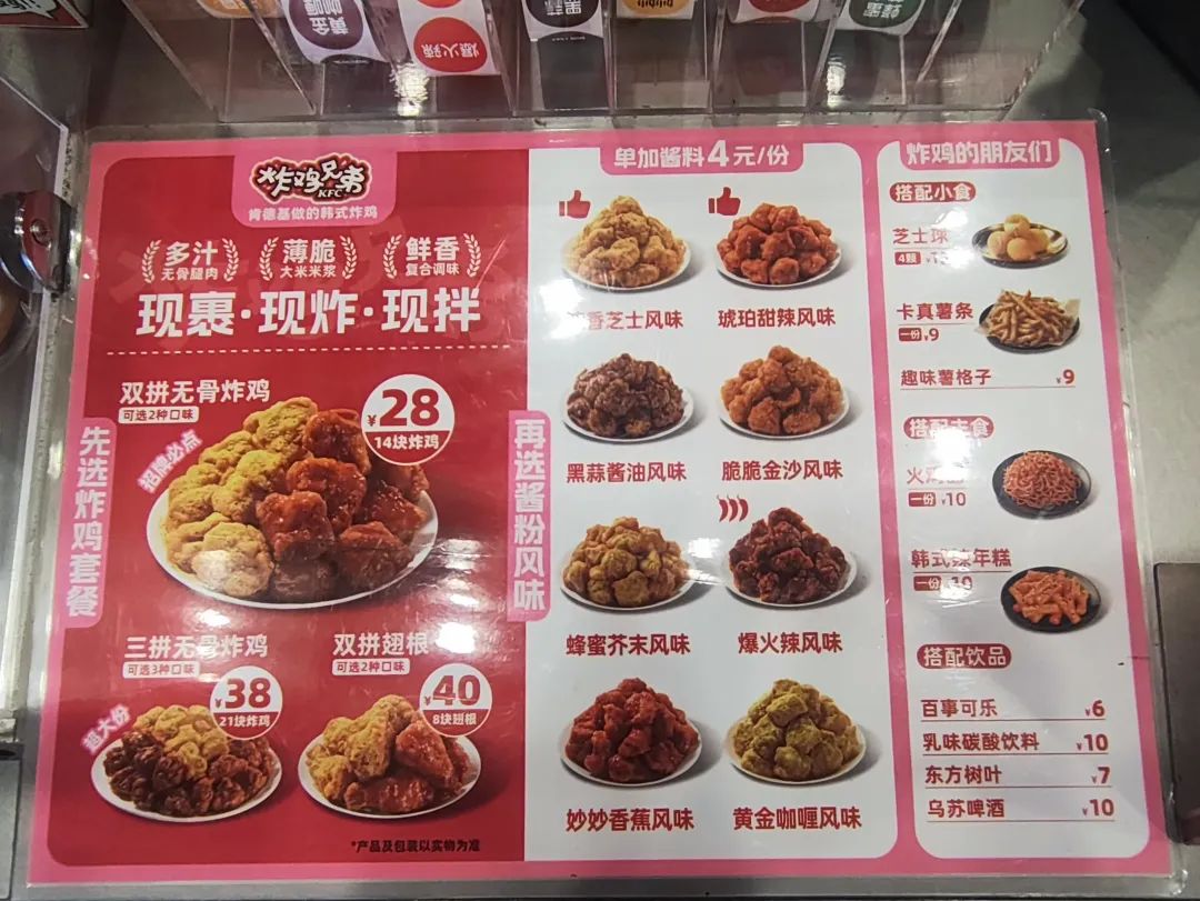 第一條路徑是獨(dú)立開設(shè)門店,是最直接的擴(kuò)張路徑。憑借小型化、高效運(yùn)營的模型,以及肯德基品牌勢能,在供應(yīng)鏈與研發(fā)上的長期優(yōu)勢,能夠幫助“炸雞兄弟”能夠快速切入市場,對現(xiàn)有炸雞品牌形成實(shí)質(zhì)性的降維打擊。