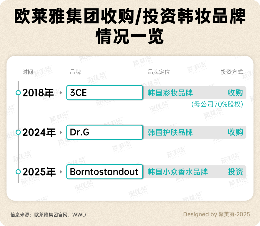 一方面,歐萊雅針對韓妝品牌的投資與收購動作正逐步加大。Dr.G是歐萊雅集團繼2018年收購3CE后,時隔6年收購的首個韓國化妝品牌。截至目前,歐萊雅針對韓妝品牌發(fā)起的3起投資/收購動作中,發(fā)生在近一年的便有兩起。