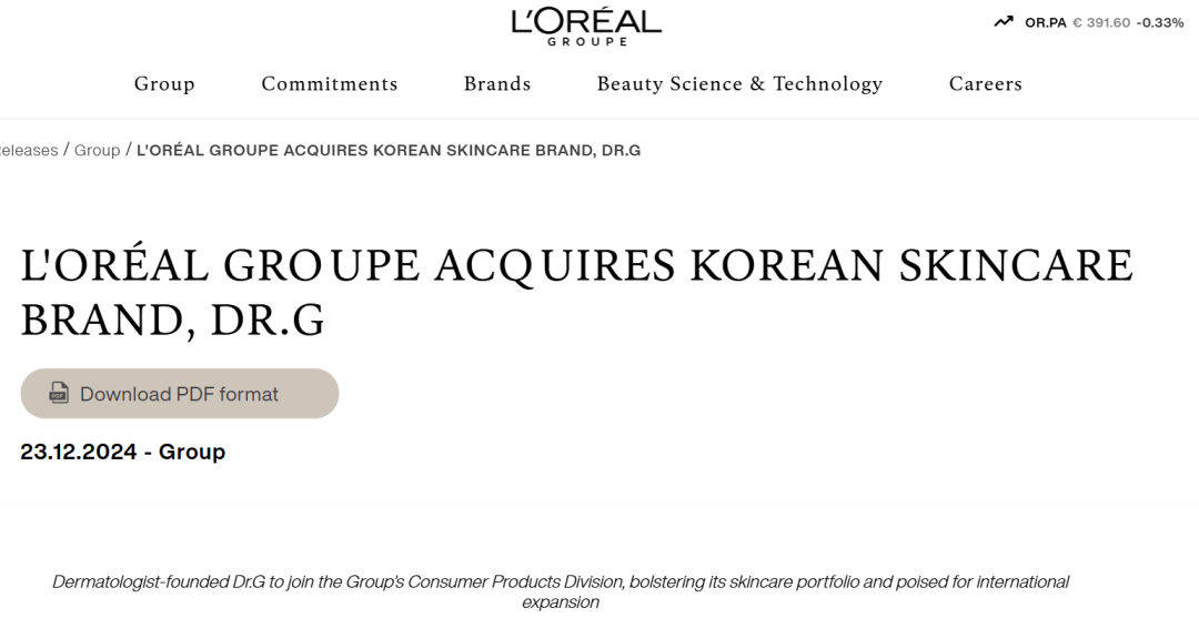 回到事件本身來看,去年12月,歐萊雅集團于官網(wǎng)發(fā)布公告稱其已與Migros簽署協(xié)議,收購其子公司Gowoonsesang Cosmetics Cosmetics Co,Ltd。(詳見)而本次做出僅聚焦Dr.G的計劃,距離歐萊雅宣布收購尚不足一年。