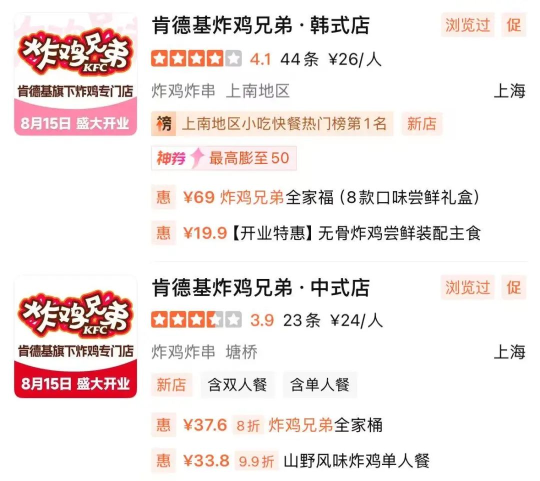 事實(shí)上,肯德基創(chuàng)立之初,靠的就是炸雞。而在中國(guó)市場(chǎng),其吮指原味雞、黃金脆皮雞等經(jīng)典炸雞也早已深入人心。紅餐網(wǎng)觀察發(fā)現(xiàn),“炸雞兄弟”兩家店并未刻意與母品牌割裂,而是將其“肯德基基因”作為核心賣點(diǎn)。