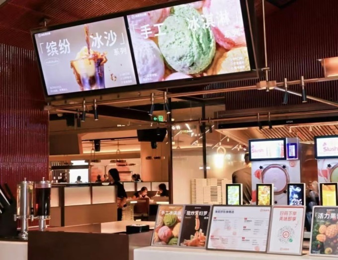 首先,等位區(qū)新增甜品站和互動娛樂區(qū)。等餐時,顧客不僅可點手工冰淇淋、冰沙或者現(xiàn)打冰沙,還可以參與娛樂區(qū)的娃娃機挑戰(zhàn)賽,娃娃機游戲幣可用現(xiàn)金或撈幣兌換,據(jù)悉開業(yè)首周娃娃機訂單就超過500個。