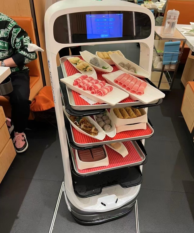 其次,“AI+”成門店特色。為了提升可視化體驗,門店采用開放式設計,引入智能打鍋機,系統(tǒng)可自動控制湯料比例,打鍋流程全透明可視化;為減少人工等位時間,店門口設有三臺迎賓機器人,服務人員輸入桌號后,可引導顧客至餐位;為了留住親子客群,海底撈與斑馬和猿編程合作,引入AI體驗裝置和學習互動模塊,增加門店趣味性和互動性。