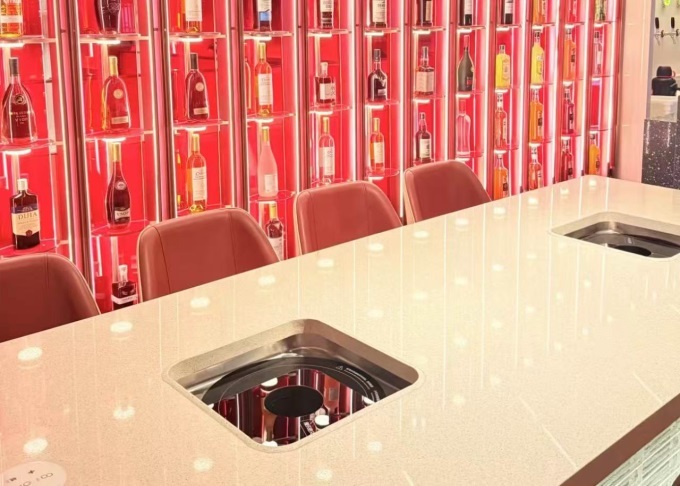 當然,海底撈首家創(chuàng)新概念店也引入了夜場模式:一是配備智能光效切換系統(tǒng),可切換正餐、清吧、俱樂部派對三種光效模式;二是設有獨立BAR調(diào)酒區(qū),提供特調(diào)微醺、貴醬白酒等系列酒水;三是設有DJ調(diào)音區(qū),會有專業(yè)DJ現(xiàn)場駐場打碟。在這三種元素的疊加下,共同為晚上9-11點的夜宵時段烘托氣氛。