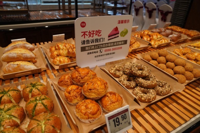 步入煥然一新的賣場,烘焙區(qū)升騰的面包香氣令人食欲大增。調改后,烘焙板塊由聯(lián)營轉為自營,商品品質全面升級,現(xiàn)場現(xiàn)烤成為主流。除了主推的網紅產品如視覺沖擊感十足的“巨大的毛毛”、寓意美好的“豐收的喜悅”外,現(xiàn)場包制的包子、香酥的鮮肉餅、金黃誘人的烤雞、滋滋作響的煎餃等新鮮出爐,煙火氣十足。