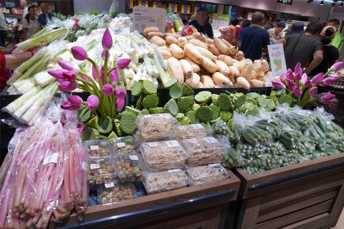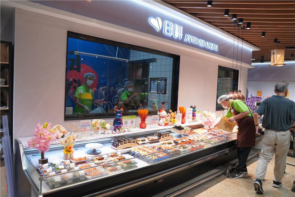 此次升級將“附近性”價(jià)值發(fā)揮到極致。利用透明魚缸與貝類池打造“海鮮市集”,現(xiàn)磨鹵水豆腐、現(xiàn)場烘焙香氣彌漫;專業(yè)師傅駐場制作刺身,日式輕食與京味小吃同臺碰撞;新增[杯蘊(yùn)秋色][萌寵樂園]等八大主題區(qū),引進(jìn)相思木餐廚具、新疆長絨棉等1800+新品;自助收銀、電子價(jià)簽全覆蓋,商品汰換率達(dá)48%,SKU精簡至6900品,效率與體驗(yàn)雙提升。