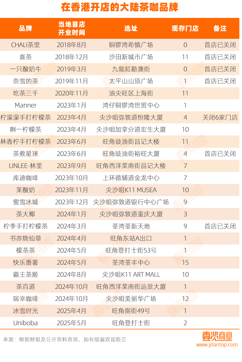 這意味著,品牌必須實(shí)現(xiàn)極高的單店盈利水平才能生存。此外,香港本地茶飲文化深厚,港式奶茶、臺(tái)式奶茶品牌根基牢固,國際咖啡品牌同樣云集,競爭并不比內(nèi)地小。