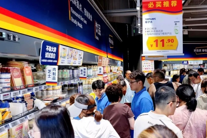其中,姑蘇區(qū)世茂廣場店從進場施工到開業(yè)僅用3個月,該店延續(xù)標(biāo)志性的“精選SKU+自有品牌”策略,90%商品為13個自有品牌,覆蓋生鮮冷鏈、烘焙熟食、日用家居等品類,并針對中國家庭結(jié)構(gòu)特點,推出“小包裝也低價”模式。