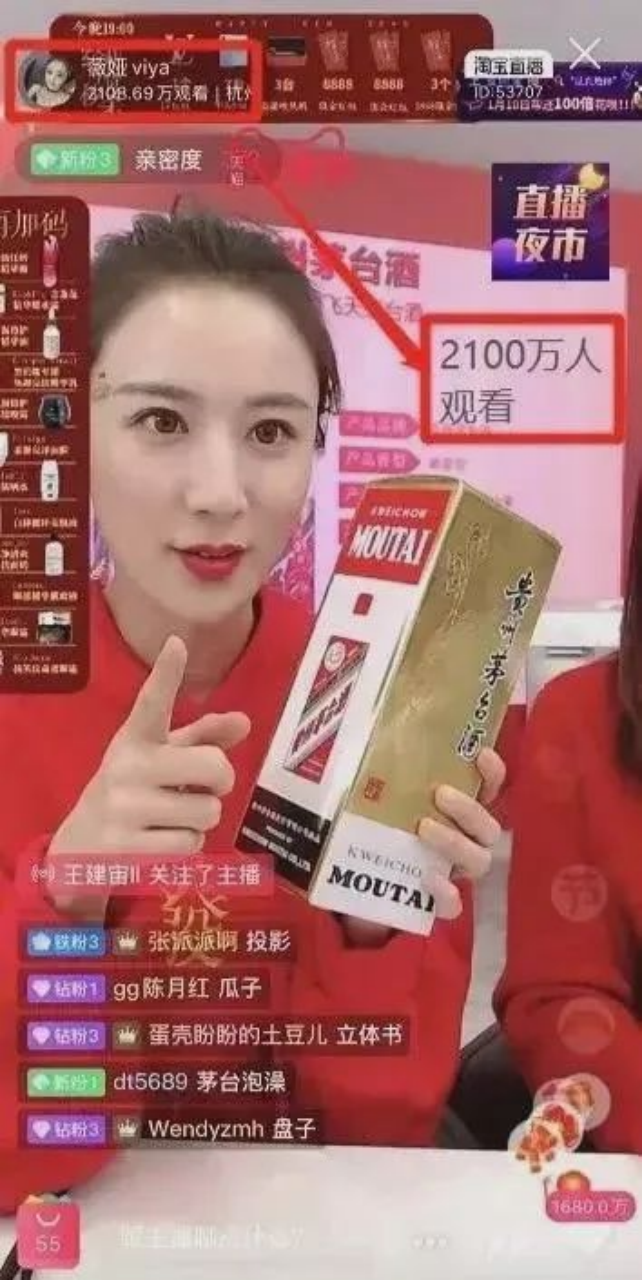 回顧茅臺與各平臺的互動歷程,可謂是不斷探索、逐步深入。早在2019年,貴州茅臺就大力拓展電商、商超及賣場渠道。2020年初的淘寶年貨節(jié)上,2100萬人擠進超頭主播薇婭直播間,500瓶2018年的飛天茅臺瞬間售罄,這一事件充分展示了電商平臺的強大帶貨能力,也促使茅臺更加重視線上渠道。此后,羅永浩、李國慶、潘長江等一眾名人在直播平臺直播賣茅臺酒,進一步提升了茅臺酒在直播電商領域的熱度。