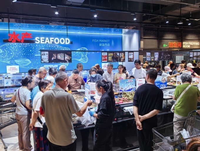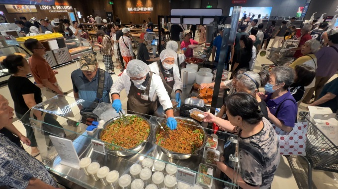 細(xì)節(jié)處的“胖東來(lái)式”改造更顯用心:貨架上的放大鏡、老年購(gòu)物車(chē)、兒童購(gòu)物車(chē)、輪椅購(gòu)物車(chē)、寵物寄存處等實(shí)現(xiàn)全客群無(wú)憂(yōu)購(gòu)物;開(kāi)放式收銀臺(tái)采用“多進(jìn)多出”設(shè)計(jì),高峰時(shí)段可同時(shí)開(kāi)啟55個(gè)結(jié)算機(jī)臺(tái);海鮮區(qū)增設(shè)“剖魚(yú)間”,瀝水稱(chēng)重后提供免費(fèi)打氧、去鱗、去內(nèi)臟等處理服務(wù),顧客回家即可直接下鍋烹飪;肉禽區(qū)選中心儀商品后,依舊按需求切絲、切片、絞餡等等,把南方菜市場(chǎng)的“寵粉”搬到京城;增設(shè)的餐吧和配套桌椅、戶(hù)外區(qū)域擺放多組休閑桌椅與遮陽(yáng)傘,成為居民歇腳聊天的“社區(qū)會(huì)客廳”。最受好評(píng)的是“管家式停車(chē)場(chǎng)”,多名身著統(tǒng)一制服的服務(wù)人員不僅引導(dǎo)停車(chē),還會(huì)主動(dòng)幫老人拎重物、為帶孩子的家庭推送購(gòu)物車(chē),顧客的大拇指成為最好的勛章。