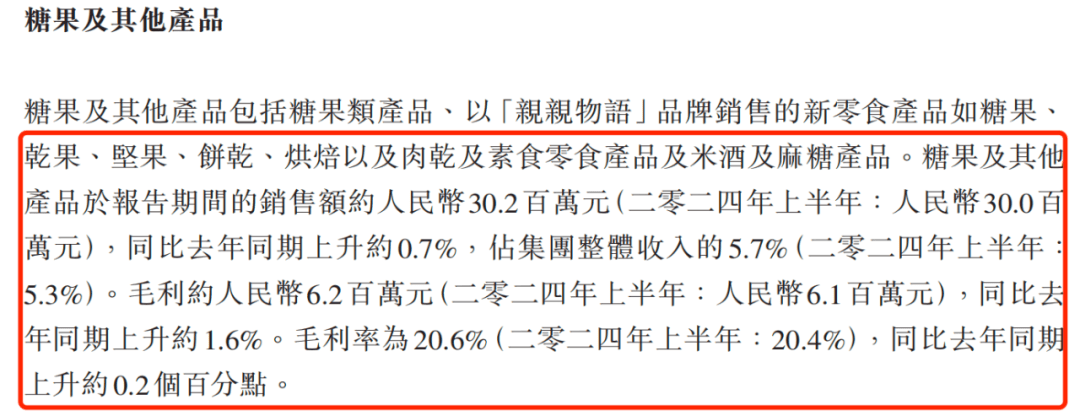2025年上半年,糖果及其他產(chǎn)品的收入同比上升約0.7%,毛利較去年同期增長約1.6%,增長緩慢。