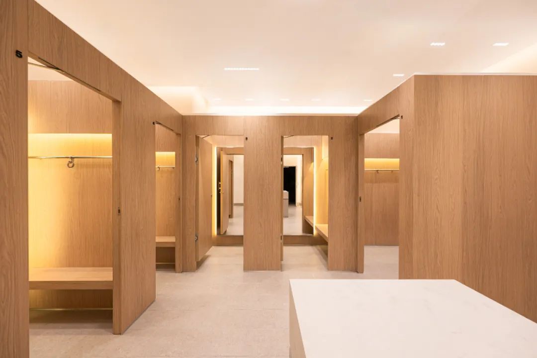 更多的升級(jí)在于和消費(fèi)者「互動(dòng)」,巨幅落地鏡搭配柔和燈光打造出來(lái)的摩登試衣間,憑借著強(qiáng)大的出片能力成為吸引消費(fèi)者的社交打卡地;將「零售空間」讓渡為「社交空間」的休息區(qū),更能吸引顧客停留、休閑、社交,「留白」讓門(mén)店變成社交場(chǎng)和「秀場(chǎng)」,傳達(dá)品牌「愜意」生活方式和理念,強(qiáng)化消費(fèi)者情感鏈接。