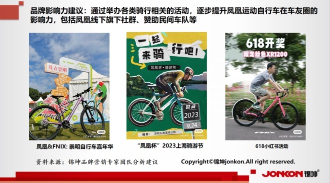 目前,鳳凰已經(jīng)嘗試過舉辦包括崇明自行車嘉年華、“鳳凰杯”2023上海騎游節(jié)以及一系列抽獎活動。除了原有的上述活動以外,鳳凰可以積極推動自身品牌社群的運營,并定期組織社群的線下活動,因為騎行本身就是一個社交屬性相對較強的活動,通過品牌社群相關(guān)活動的運營,能夠增強顧客忠誠度和粉絲粘性。雖然鳳凰暫時可能不會冠名專業(yè)車隊或贊助國際頂尖賽事,但是可以贊助一些有一定規(guī)模的民間騎游車隊,從而逐步擴大自身在騎友圈的影響力。