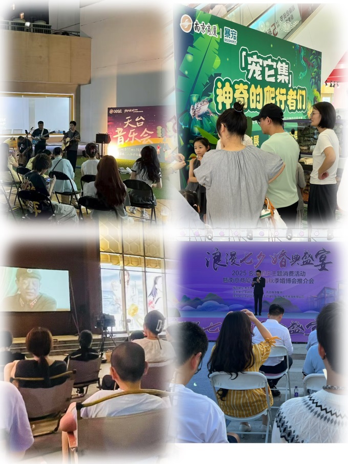 在品牌矩陣上,南京商廈聯(lián)合周大福、老鳳祥、寶慶、阿迪、耐克、李寧、榮萍、陶玉梅、雅戈爾、海爾、瑞庭婚禮等頭部品牌,通過老字號+潮流新銳品牌聚合,為新人的幸福保駕護(hù)航,更為新人提供一站式的婚嫁解決方案。除此以外南京商廈還打造貫穿七夕到十一的 “幸福盛宴”,以豐富多彩的互動、趣味、沉浸式的活動,滿足全客層的體驗需要,“頂好七點(diǎn)半天臺音樂會、七夕玫瑰劇場、暴寵小可愛萌寵展.....”等一系列沉浸式活動給南京城北新消費(fèi)注入一股活力。