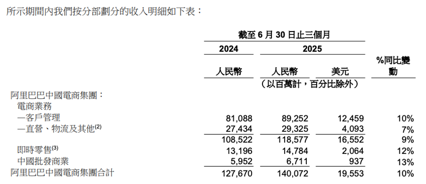 然而,投入力度如此之大的背景下,阿里的即時(shí)零售業(yè)務(wù)營(yíng)收并未有顯著增長(zhǎng)。財(cái)報(bào)顯示,2025年Q2,阿里即時(shí)零售業(yè)務(wù)營(yíng)收147.84億元,同比增長(zhǎng)12%,增額僅15.88億元。