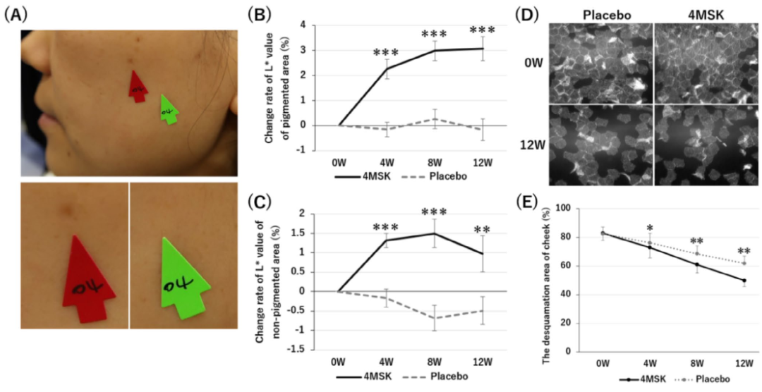 一項(xiàng)針對31名韓國女性、為期12周的雙盲、分臉對照臨床研究,為4MSK的實(shí)際效果提供了有力支撐: