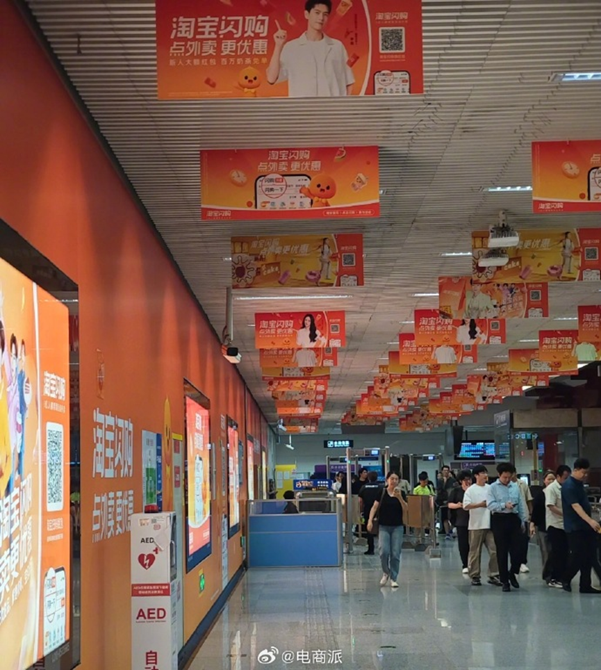 7月下旬那段時間,離美團總部最近的地鐵站鋪滿了淘寶閃購廣告。美團員工上班路上一抬頭,看見的就是鋪天蓋地的“淘寶閃購點外賣更優(yōu)惠”“淘寶閃購30分鐘送達(dá)”,這番場景,實在是有點戲劇化。
