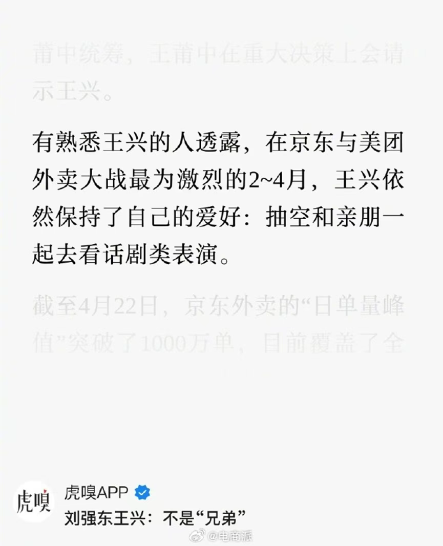 2-4月期間,王興大部分時間依然投入在AI和具身智能領(lǐng)域。而且即使是外賣市場競爭最激烈的時刻,王興也依舊保持了自己的愛好,會抽空和親人朋友一起去看話劇。