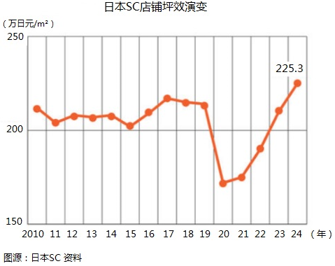 2024年SC業(yè)態(tài)總體銷(xiāo)售業(yè)績(jī)?yōu)?2.1254萬(wàn)億日元(約合人民幣1.54萬(wàn)億元),同比增長(zhǎng)4.2%,與2018年的32.7萬(wàn)億日元(約合人民幣1.57萬(wàn)億元)峰值比較,非常接近。