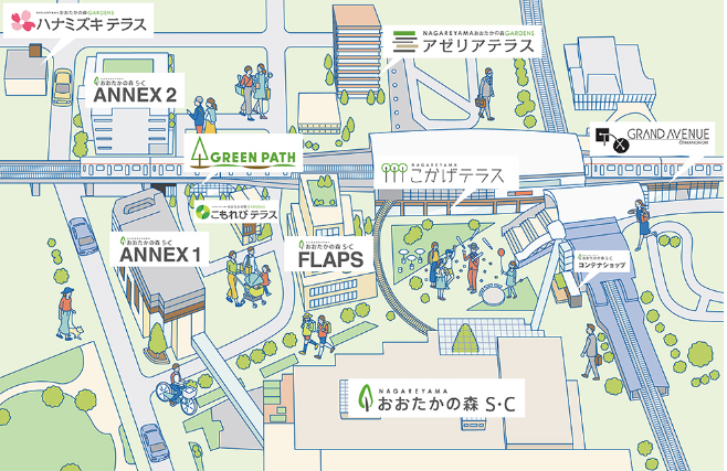 其一、高島屋旗下的東神開(kāi)發(fā)會(huì)社建設(shè)的千葉流山市的大鷹之森SC(おおたかの森S.C),于2007年開(kāi)業(yè),建筑面積10.65萬(wàn)m²,經(jīng)營(yíng)面積4.1萬(wàn) m²,規(guī)劃130個(gè)商鋪。本館地上3層,附設(shè)5層停車(chē)樓,開(kāi)設(shè)診所、健身館、補(bǔ)習(xí)班等社區(qū)服務(wù)功能,后來(lái)又陸續(xù)擴(kuò)建,2014年開(kāi)業(yè)的ANNEX1(6層),主題是家電量販店,2015年開(kāi)設(shè)幼兒園、兒童教育項(xiàng)目,2021年開(kāi)業(yè)的FLAPS(6層),主題是生鮮、飲食、時(shí)尚,2022年開(kāi)業(yè)的ANNEX2(4層),主打商務(wù)休閑功能,形成獨(dú)特的與社區(qū)滲透的商業(yè)區(qū),輻射5公里商圈40萬(wàn)人。