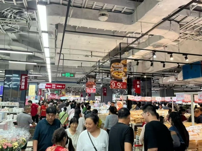 步入超市內(nèi),各區(qū)域更是人氣爆棚,收銀區(qū)開啟全部通道,工作人員快速掃碼、裝袋,即便如此,隊(duì)伍仍排到了貨架旁,但市民們耐心等候,無人抱怨,整場開業(yè)場景盛況空前,盡顯大家對(duì)這一全新消費(fèi)場景的期待與認(rèn)可。