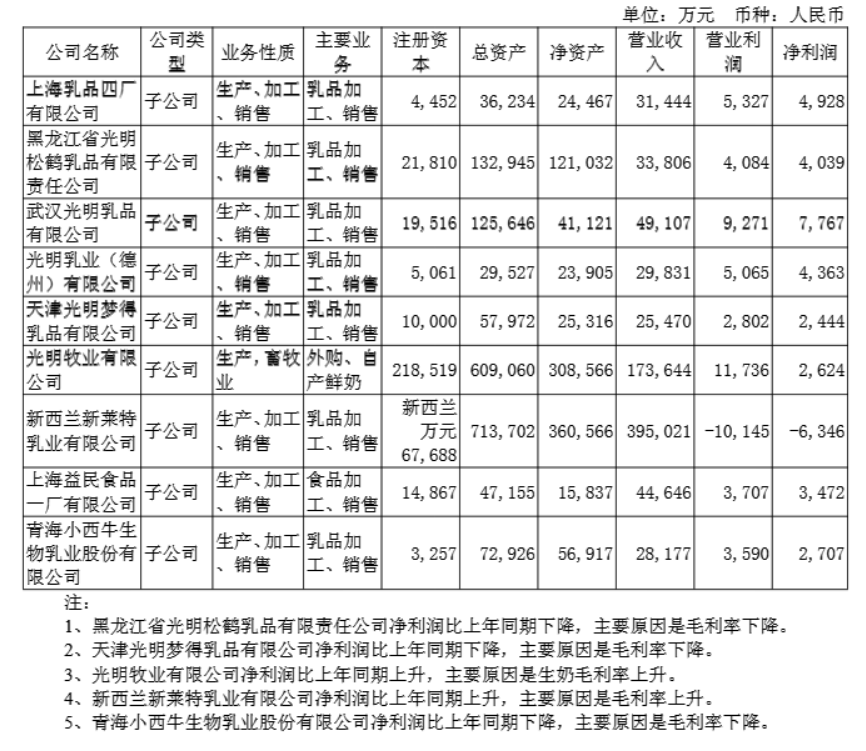 “趣解商業(yè)”注意到,毛利下滑的子公司里,就包括光明乳業(yè)2021年并購的青海小西牛生物乳業(yè)股份有限公司。