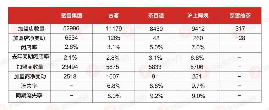 霸王茶姬未披露加盟商進退數(shù)據(jù),但在同店銷售連續(xù)下滑的背景下,加盟商信心難免承壓。奈雪的茶則處在加盟店縮水的狀態(tài)。